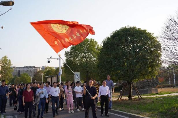 物理与电子学院部门工会积极响应校工会号召,开展以“庆祝二十大,永远跟党走”健步走主题活动。119日下午430分,学院全体教职工会员从新校区物理楼前坪出发,沿玉带河畔、看日斜西山,绕图书馆旁、闻书香气息,过教学楼下、听朗朗书声,英姿矫健五千步,交流学习二十大,谈笑风生,其乐融融。