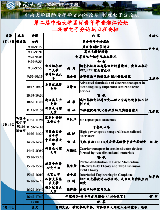 第二届中南大学国际青年学者湘江论坛—物理电子分论坛