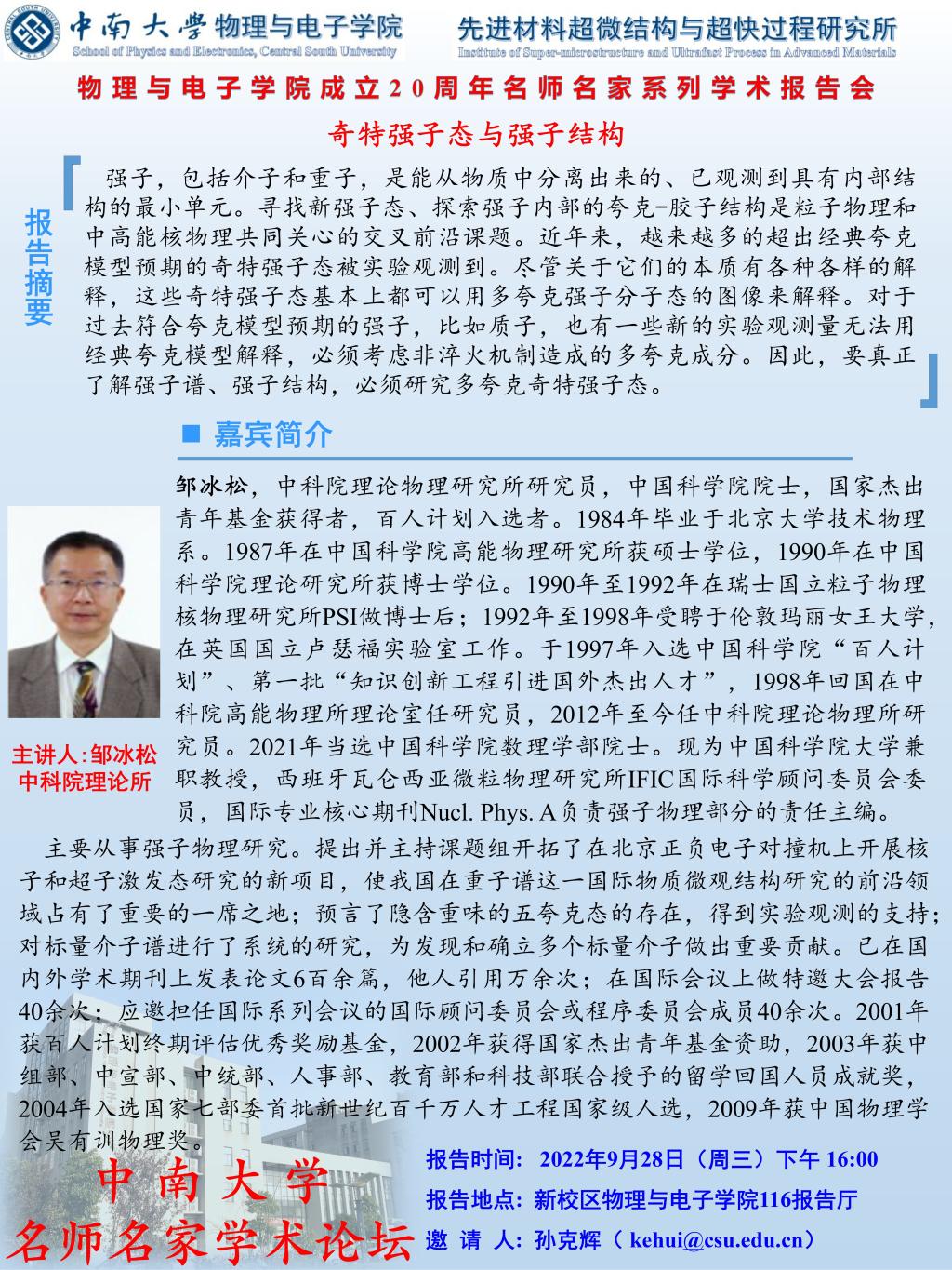 中南大学名师名家学术论坛-奇特强子态与强子结构