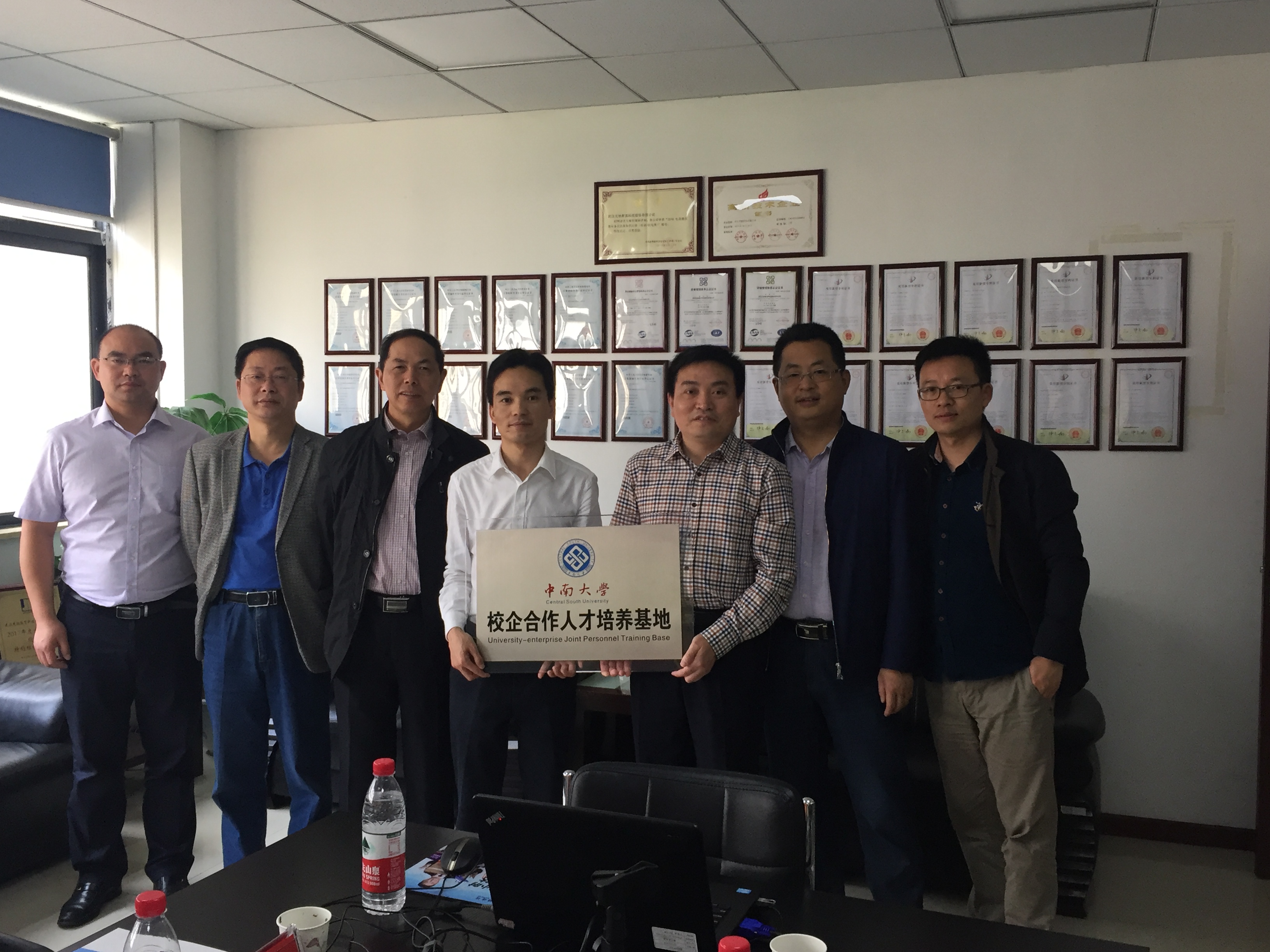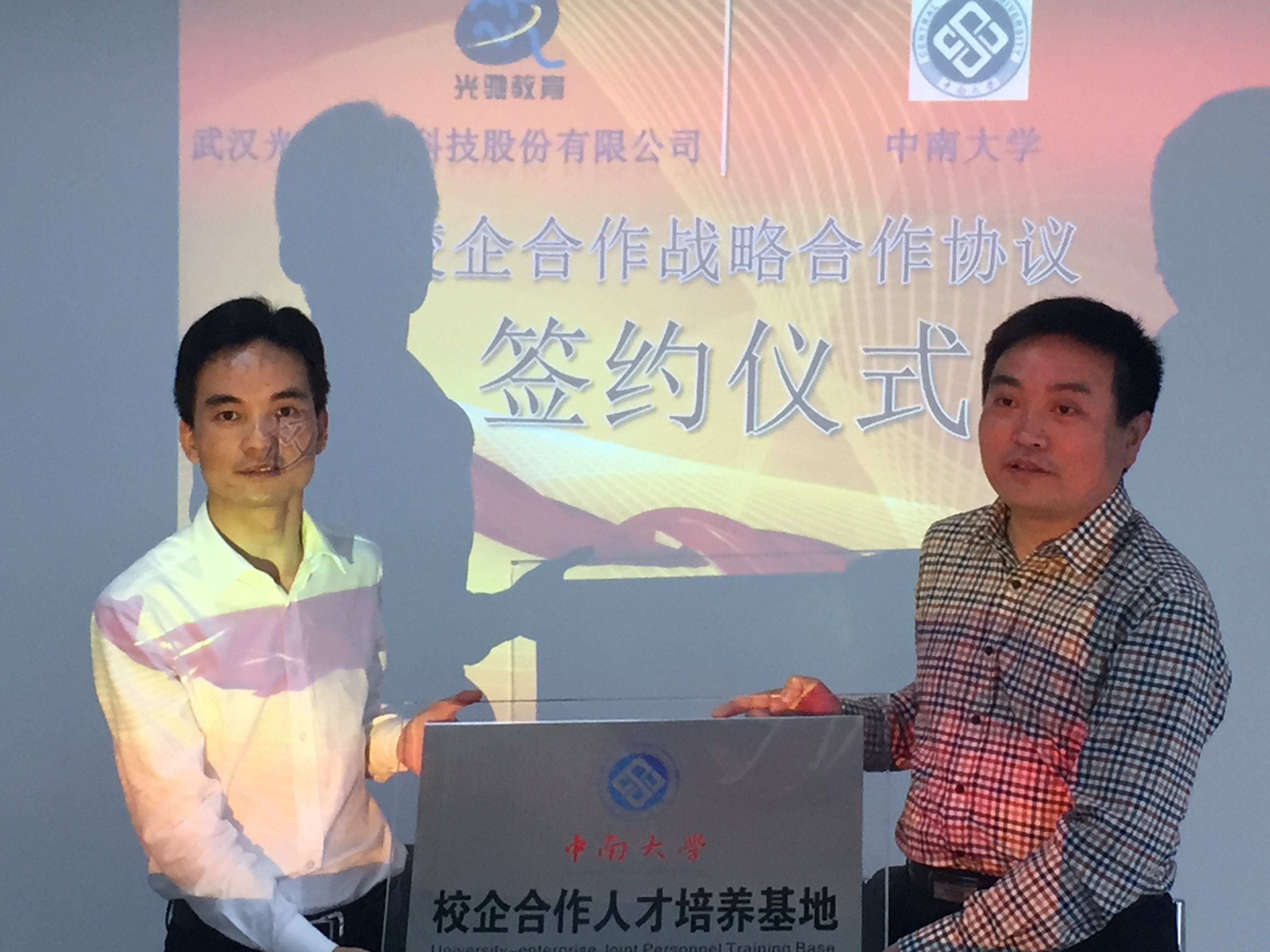4月15日上午,中南大学与武汉光驰教育科技股份有限公司校企合作人才培养基地签字授牌仪式在武汉国家光谷新区举行,物理与电子学院副院长孙克辉教授、杨兵初教授、李宏建教授、夏辉教授、谢文科副教授等与武汉光驰李小红总经理参加了签字授牌仪式。