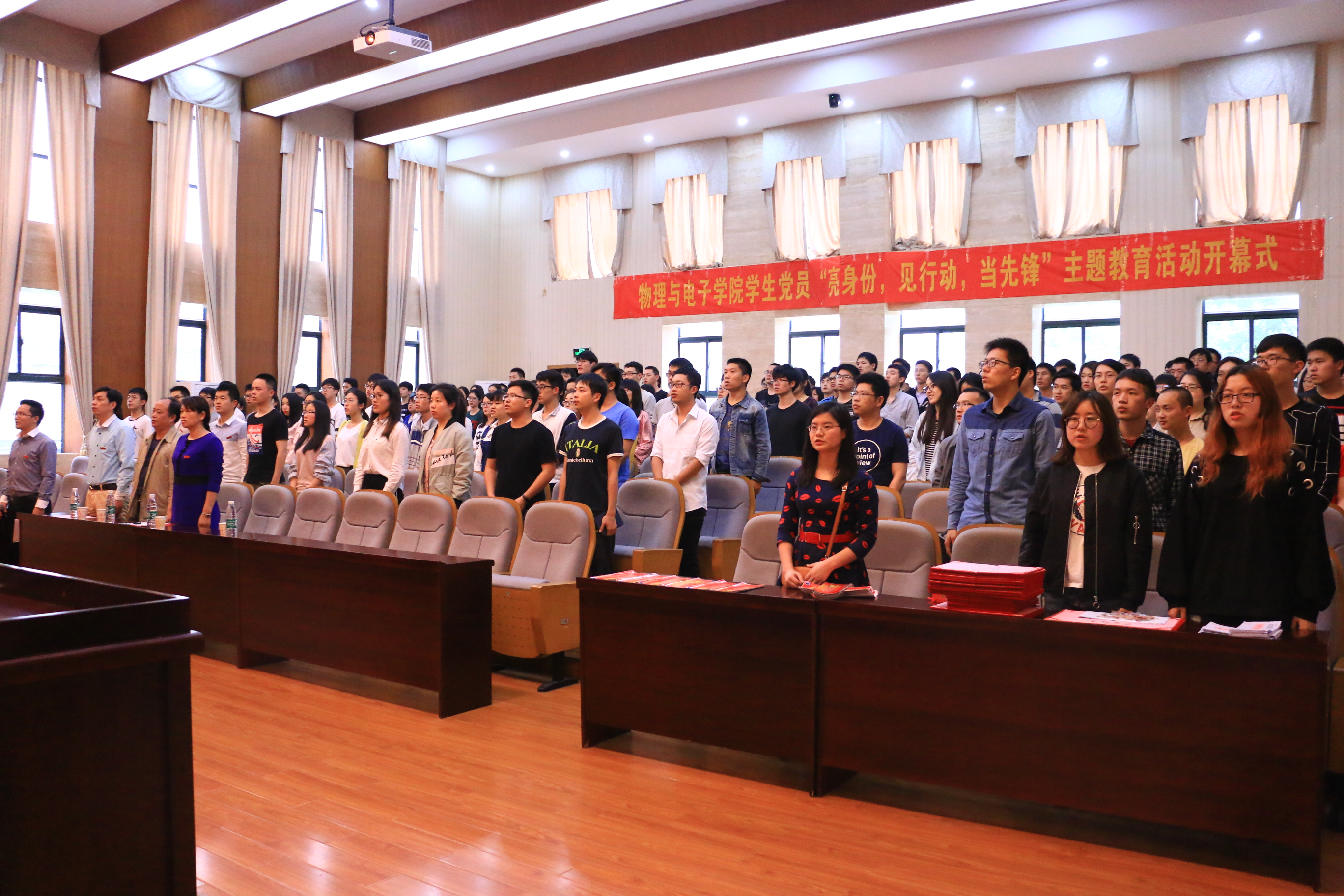 4月19日下午15:00,物理与电子学院学生党员“亮身份,见行动,当先锋”系列活动开幕式在物理楼116报告厅隆重举行。物电院党委书记许宏武、党委副书记谢群、党委委员兼组织干事申友桂、各年级辅导员以及全体学生党员共150余人参加了开幕式。