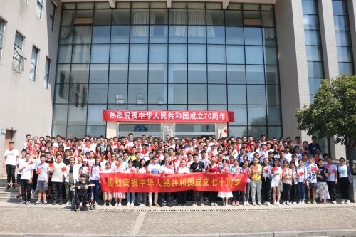 庆祝大会开始,伴随着雄壮的国歌声,鲜艳的五星红旗缓缓升起,全场师生齐声高唱中华人民共和国国歌。大家认真聆听了中共中央总书记、国家主席、中央军委主席习近平发表的重要讲话。