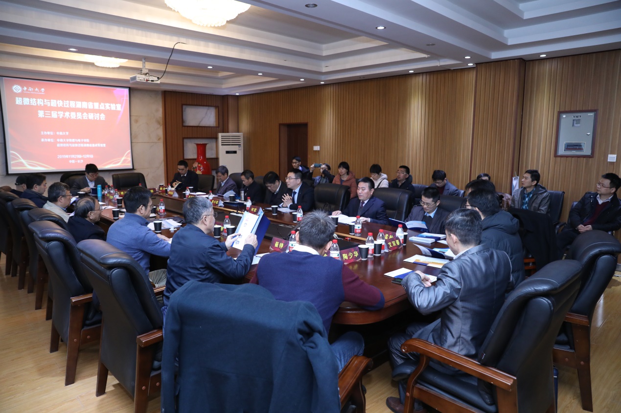 2019年11月30日上午,超微结构与超快过程湖南省重点实验室第三届学术委员会研讨会在新校区物理楼116报告厅顺利召开。都有为院士、徐慧教授、周科朝教授等10余位学术委员会委员、学院班子成员和50余位师生参加了本次会议,会议由本科生院院长何军教授主持。