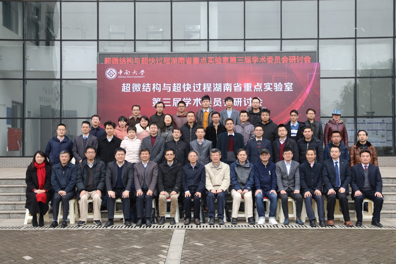 会议开幕式由周科朝副校长致欢迎辞,并为第三届学术委员会委员颁授聘书。然后由物理与电子学院院长孙克辉教授介绍物理与电子学院的学科专业沿革、师资队伍、学科发展现状,详细介绍了超微结构与超快过程实验室在队伍建设、平台建设、科学研究方面的进展情况。在工作汇报环节,黄寒、阳军亮、陶少华、龙孟秋四位教授分别代表表面研究室、器件研究室、光学研究室、理论研究室做近几年发展报告,内容包括研究项目、科研平台、科研设备与代表性成果等方面。随后,全体与会成员合影留念。