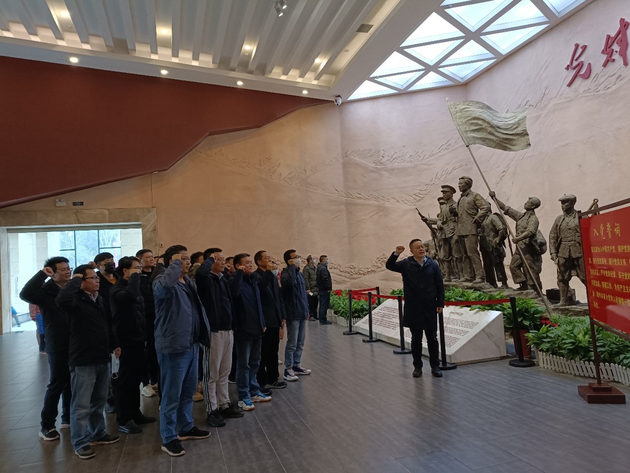 秋收起义文家市会师纪念馆位于湖南省浏阳市文家市镇。在秋收起义纪念馆,代国章书记与全体党员重温了入党誓词,随后在讲解员的带领下,一起学习、重温秋收起义部队会师文家市、召开前敌委员会,经过激烈讨论、起义部队最终接受毛泽东放弃攻打长沙,向敌人统治薄弱的农村进军的意见;次日,毛泽东同志发表“以革命的小石子打破反动派大水缸”的著名论述;自此开辟农村包围城市的正确革命道进而建立井冈山革命根据地等重大历史事件和转折。习近平总书记在庆祝建军90周年大会上亦指出:“南昌起义连同秋收起义、广州起义以及其他许多地区的武装起义,标志着中国共产党独立领导革命战争、创建人民军队的开端,开启了中国革命新纪元。”