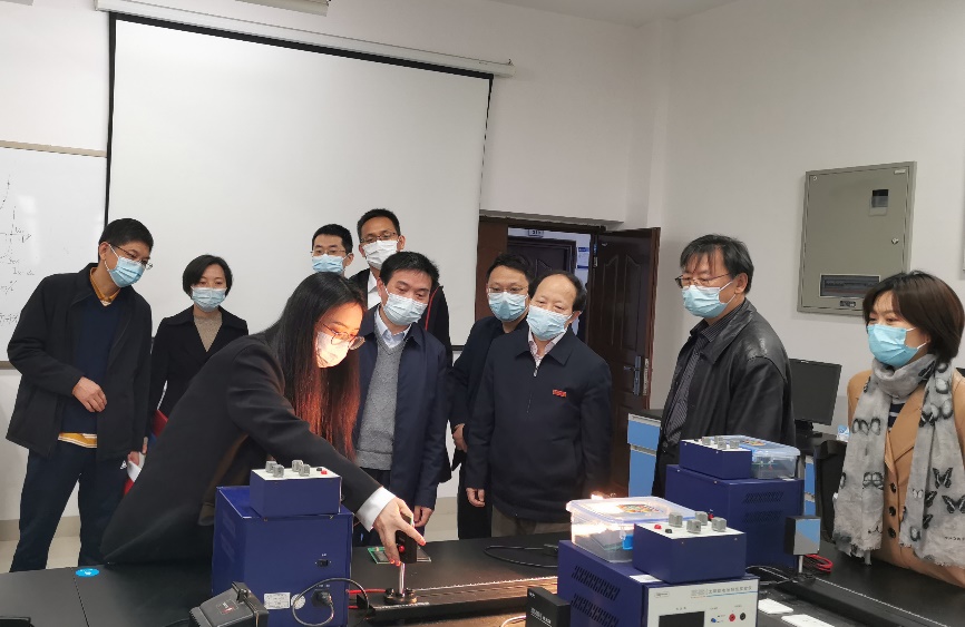 柴立元副校长一行首先参观了部分基础物理实验室和国家级人才科研实验室,随后参加了调研会议。会上,李登伶书记代表学院对柴立元副校长一行来学院进行调研指导表示热烈欢迎,孙克辉院长就学院总体发展情况,特别是学科建设及校友工作方面的成绩和进展进行了介绍,并汇报了学院今后的发展规划、目标方向及学院的发展瓶颈和发展需求。随后,阳军亮副院长、刘敏教授、王辉教授、袁永波教授等针对学科建设和校友工作先后发言。会议休息期间,孙院长还“秀”出了学院刚创作不久的学院院歌《物电之光》,给此次调研交流增加了艺术和轻松的气氛。