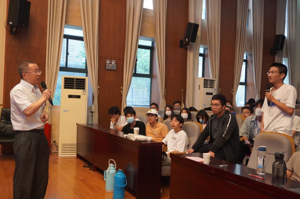 交流互动环节,多位同学提出了自己对强子物理中的问题和思考,邹院士都一一做了详细解答。最后,邹院士结合党史学习体会,勉励青年师生,要有献身科研的家国情怀,秉持坚持不懈、百折不挠的精神,做出有深度、有革新的原创性工作。报告在全场热烈的掌声中结束。