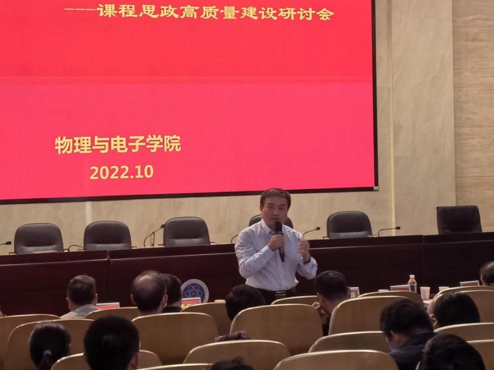2022年10月19日下午,我院在物理楼116报告厅成功召开2022年课程思政高质量建设专题研讨会。校督导李耀庄教授、彭立敏教授,学院李登伶书记、孙克辉院长等学院领导以及各系教学主任、青年教师参加研讨。会议由龙孟秋副院长主持。
