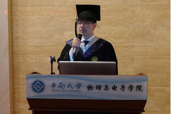 毕业研究生代表张聪、毕业本科生代表周宇航先后发言。张聪衷心感谢学院对自己的培养,感恩学院老师们的谆谆教诲,他表示在未来的人生道路上,一定会志存高远、脚踏实地,勇于攀登新高峰,牢记践行“知行合一,经世致用”的中南校训,传承发扬“格物致理”的物电精神;周宇航简要回顾了四年的求学生涯,他表示未来会继续学习,在所从事的领域发光发热,不负学院的期盼和老师的嘱托,争做奋发有为的新时代青年。