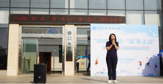 活动伊始,院党委书记谢群致开幕词。她指出,良好的身体素质是革命的本钱,老师们在努力工作和快乐生活的过程中,保持健康的体魄是必需且必要的。她希望学院上下同心,砥砺奋斗,以健康的身体和饱满的精神,在学院“双一流”建设发展中贡献自己的力量。随后,她宣布本次教职工趣味运动会正式开幕。
