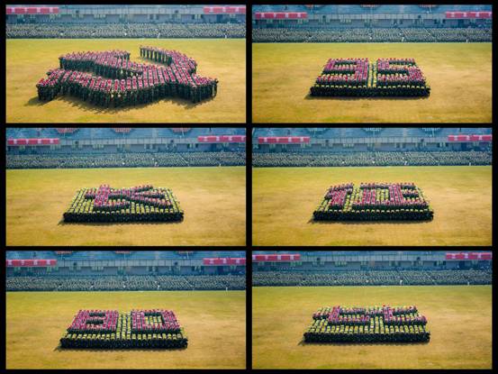 在今年军训阅兵式和校运会开幕式上,学子用组成的方阵以队列操的形式,摆出了“长征”、“80”“七七”等字样,展示了“中国共产党党徽”等图案,回顾了自1921年至2016年这95年以来,中国共产党及中华人民共和国发生的几大重要事件。