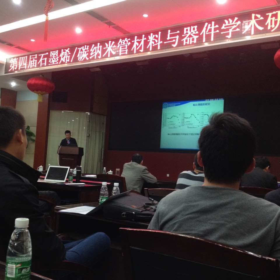 第四届石墨烯/碳纳米管材料与器件学术研讨会于2014年11月7日到9日在湖南长沙国防大学召开,何军教授、肖思博士应邀在会上做了《MoS2纳微薄膜的新颖非线性光学特性》的学术报告。
