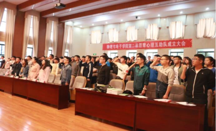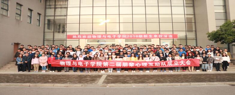 2018年10月10日下午,物理与电子学院第二届朋辈心理互助队成立大会在新校区物理楼116报告厅召开。物电院各年级辅导员杨凌云、胡菁菁、丁俊男、肖佳珣、邬永嘉老师参与了本次会议。会议由心助会成员李晶晶同学主持。