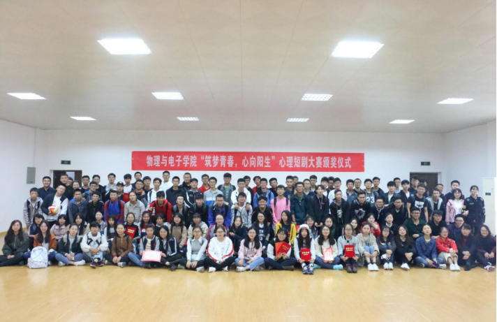 2018年10月16日中午12时,物理与电子学院“筑梦青春,心向阳生”心理短剧大赛颁奖仪式在新校区物理楼346活动室召开。物电院党委副书记谢群,年级辅导员杨凌云、胡菁菁、丁俊男、肖佳珣、邬永嘉老师出席了此次颁奖仪式。颁奖仪式由心助会副会长李烨主持。