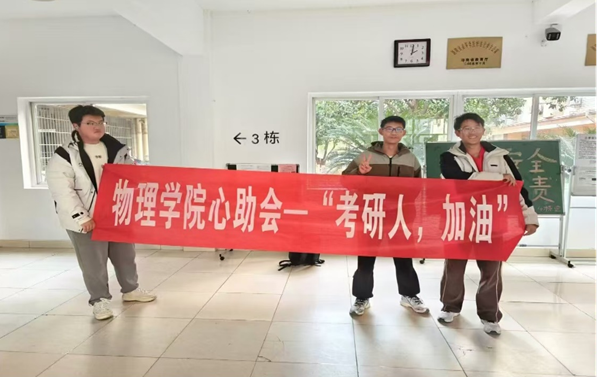 12月18日,物理学院心助会在中南大学南校区升华学生公寓举办考研加油活动,心助会成员和物理院即将考研的同学参与此次活动。