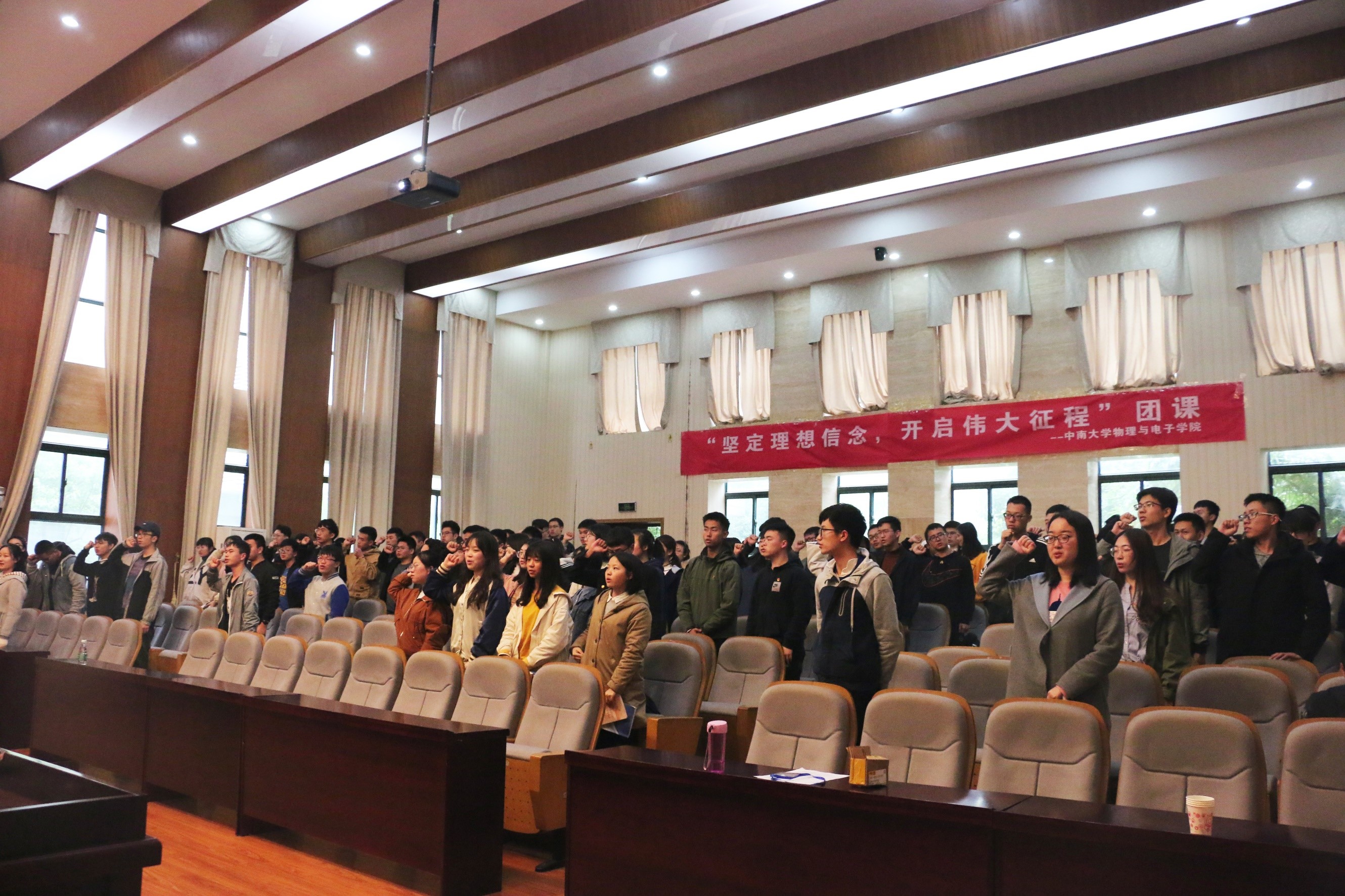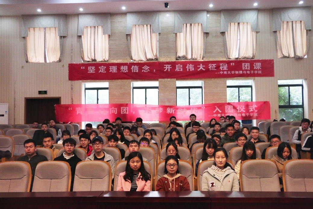 4月13日下午,物电院“青春心向团,逐梦新时代”入团仪式在新校区116报告厅成功举行。院党委委员、组织干事申友桂、5名新团员及各团支部老团员代表参加了此次仪式。