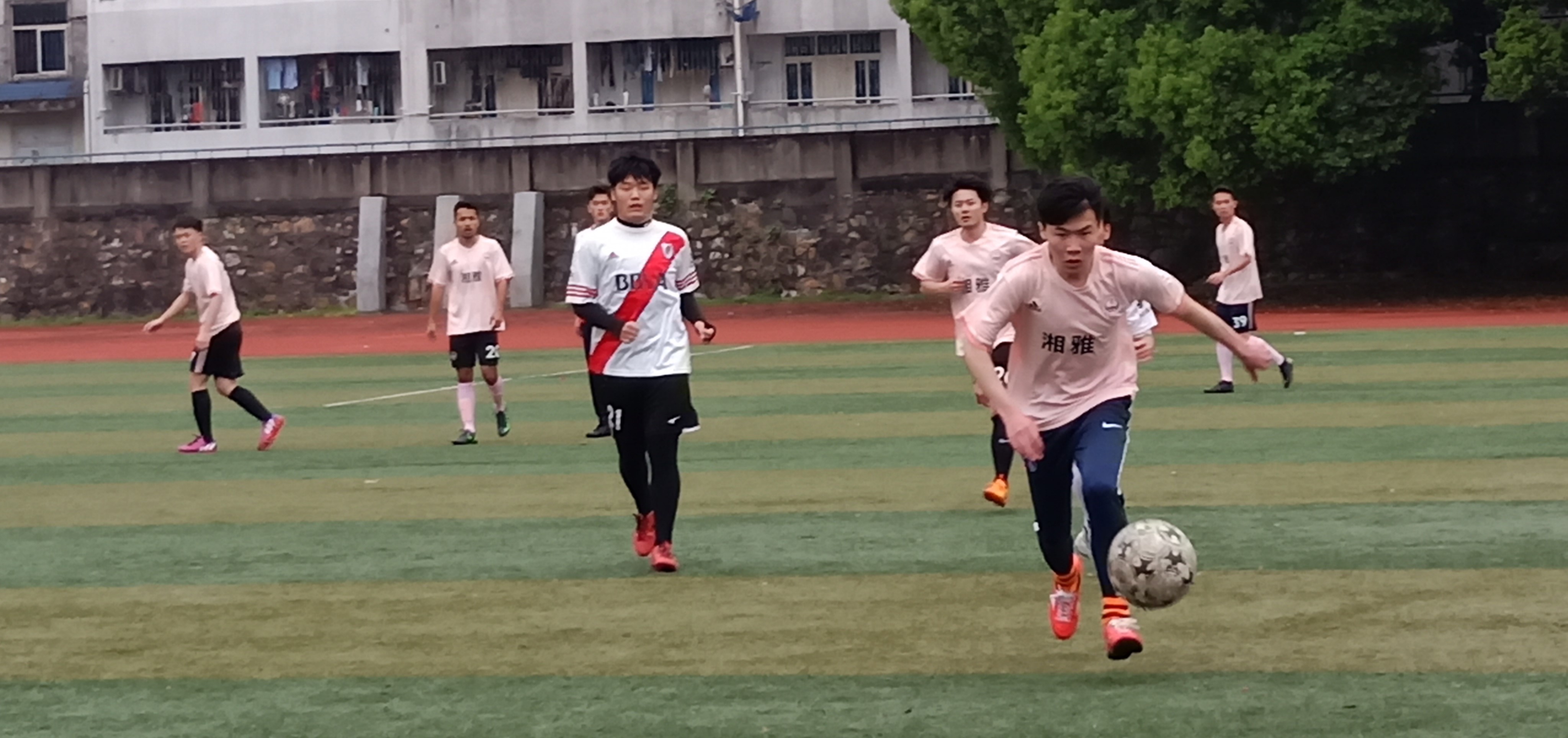 4月13日中午12点,“足协杯”足球赛小组赛在南校区足球场进行。本场比赛为物理与电子学院迎战湘雅医学院,最终物电院以4:0取得小组赛开门红。