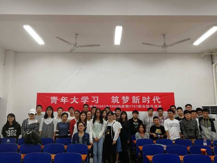 为推动习近平新时代中国特色社会主义思想,引导广大青年不忘初心、牢记使命,切实增强“四个意识”、树立“四个自信”,更加紧密地团结在以习近平同志为核心的党中央周围,坚定不移听党话、跟党走。珍惜来之不易的良好学习条件和环境,向典型模范学习,在践行文明新风的行动中提升素养,深入基层,锤炼本领,并在创新创业创优的奋斗中实现青年的时代价值,以学习的光芒点燃新时代的青春之火。 2017年4月11日下午2:00,物理与电子学院电科1501、电科1502携手应物1701举行了一场创新创业交流会,旨在让每一名大学生加入到“青年大学习”的行动之中,深入学习宣传贯彻习近平新时代中国特色社会主义思想和党的十九大精神,在践行文明新风中提升素养,努力成为一名优秀的新时代奋斗者。同时让大家对崭新的大学生活有全面的了解和认识,尽快进入大学生角色,明确自己的方向,树立自己的目标。