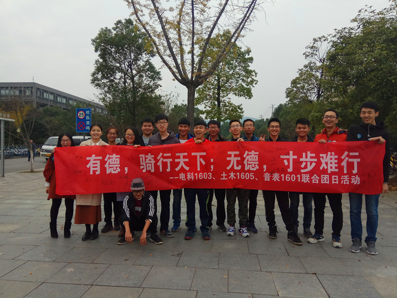 11月中下旬,电科1603班,土木1605班,音表1601班 “有德骑行天下,无德寸步难行”为主题的联谊团日活动顺利开展。此次团日活动由三班团支书共同策划,各班同学积极参与其中。