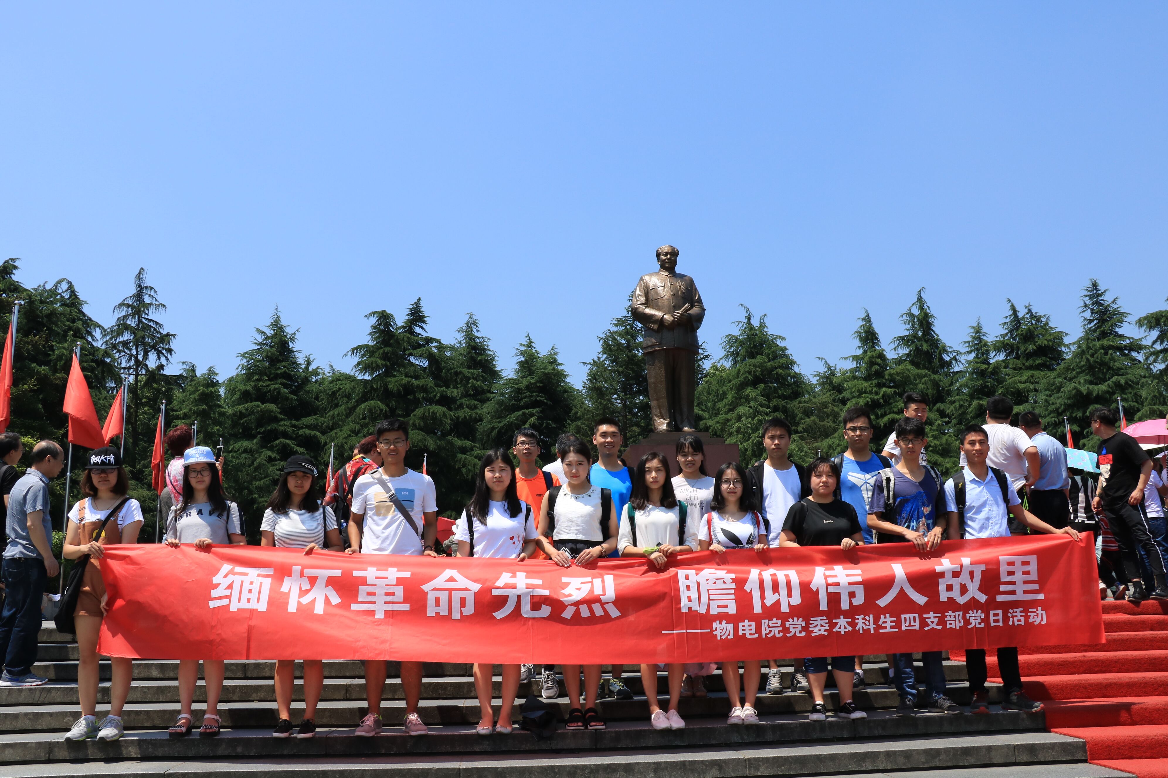 5月30日上午,物理与电子学院本科生第四党支部组织了以“缅怀革命先烈,瞻仰伟人故里”为主题的党日活动,在支部书记曾静和各支委的带领下,支部全体学生党员一同前往韶山——毛泽东同志故居开展此次活动。