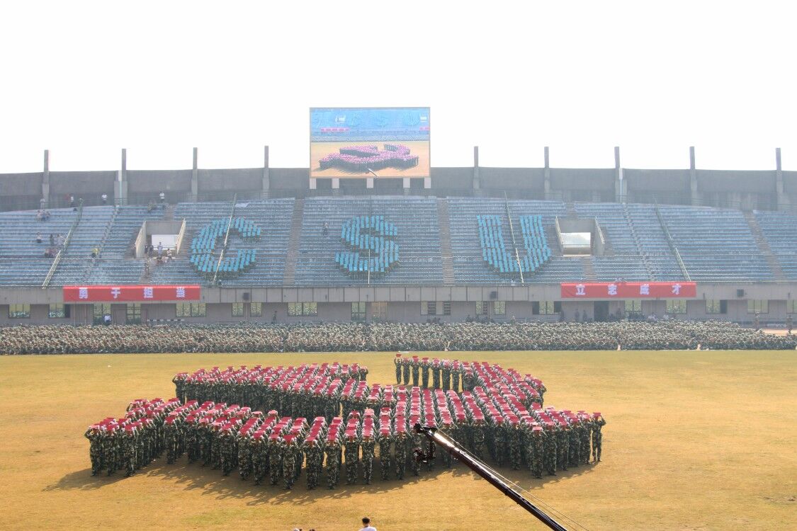 上午8点整,大会在庄严的国歌声中拉开序幕。8000余名本科新生在草坪上整装以待,接受了高文兵书记的检阅。随后由国防生连队以及各二级学院组成的表演队列为大家带来精彩纷呈的科目表演。其中,三营物电院、信息院、外语院联合表演的队列操在嘹亮的军歌声中隆重上演。方阵不断变换出“长征、七七、改革开放、自信、WTO、G20、95、80”等字样以及党徽、中国全版图等图案,整齐划一的表演给人以强烈的视觉震撼。表演过程中,物院学子精神饱满,英姿飒爽,意气风发,充分展现了物电院坚忍不拔、顽强拼搏的优良风貌。