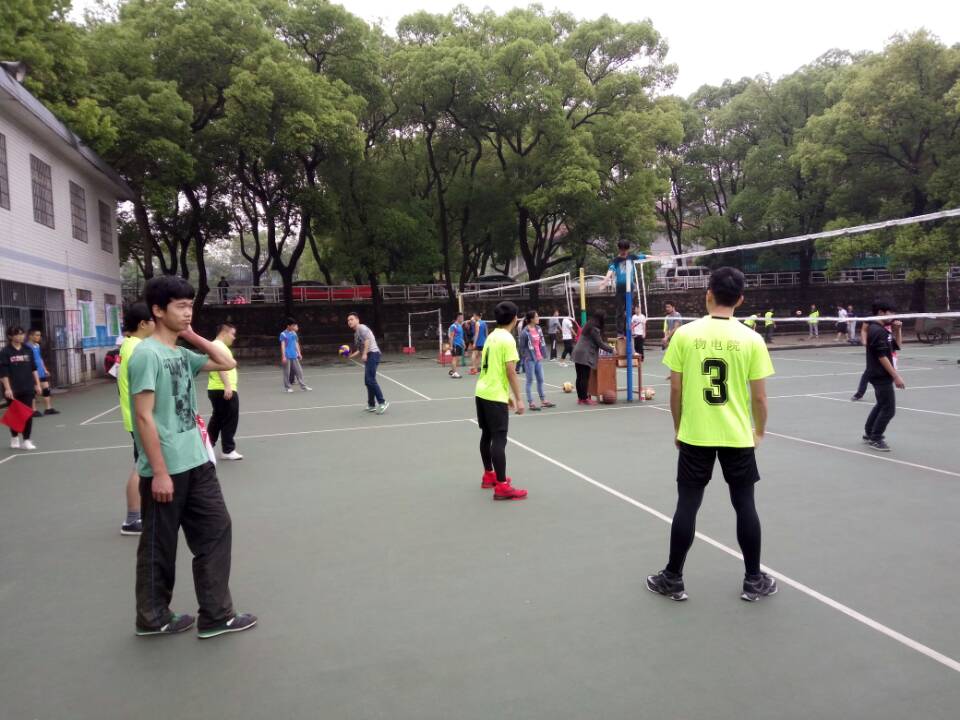 4月10日下午,校运会男子排球赛物电院首场对阵信息院的比赛于南校运动场拉开帷幕。