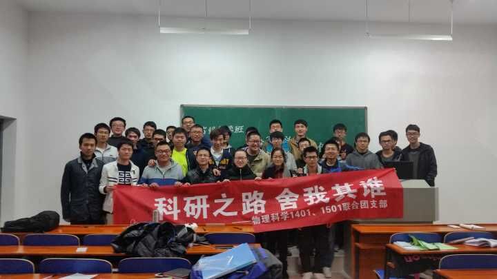 活动最后,同学们在“科学之路,舍我其谁”的横幅上纷纷签上自己的名字,共同合影留念。物科1501班班长郭子昆谈到:“本次活动举办得很成功!希望通过此次活动,让大家学会从生活中的简单事物中发现并解决问题,感受到科学的魅力。”
