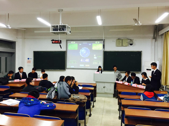 11月1日下午,物理与电子学院第二届院辩论赛在新校A座119与122教室举行,此次比赛由物电院辩论队主办,学院前任辩论队队长蒋浩然和现任辩论队队长李岳宸,学院学生干部郭志强,地信院辩论队队长黄飙和粉冶院辩论队队长高强担任了本次比赛评委。本次比赛的两个辩题分别是“当今中国商业代孕是否应该合法化”和“当今中国大陆是否应该取消信访制度”,一共八支队伍代表八个班级参赛。几场比赛分别在质询和自由辩论环节中达到高潮,双方的辩手不仅守住了自己的思维框架,并及时在对方简短的陈述中找到漏洞予以反驳。首场比赛便精彩连连,看点十足。