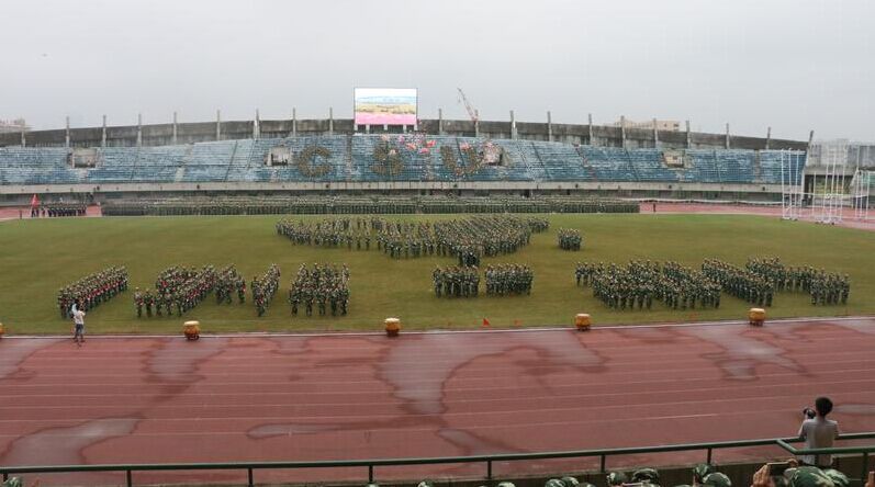 9月25日上午8时,2015届新生军训汇报表演在鸟巢体育场盛大开幕。物理与电子学院党委书记许宏武、副书记谢群及全体辅导员现场观看了汇演。