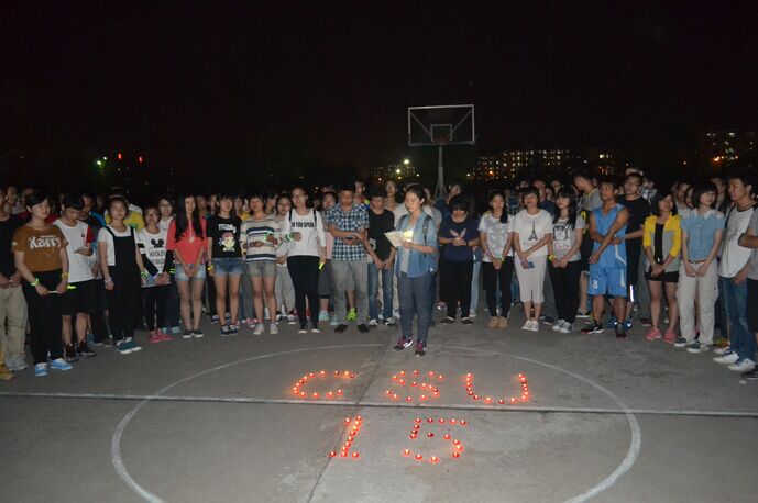 晚上九点,同学们纷纷聚集到新校篮球场上。大家谈笑风生,畅所欲言,无不因自己母校的生日而感到分外欣喜。操场上,同学们用蜡烛摆出“CSU 15”的字样,并一起将它点燃。大家用点点烛光,拼出了母校的名字。火光跳动,也将气氛推向了高潮。