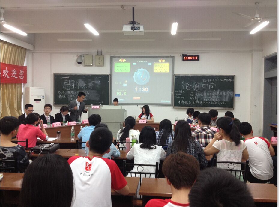 4月1日下午四点,“思辨天下 论道中南”辩论赛分赛在新校区A座208举行。物理与电子学院辩手们遭遇来自地球科学与信息物理学院的强敌,作为正方辩手就“宁要大城市一张床,不要小城市一套房”辩题与辩友进行了一场精彩的辩论。