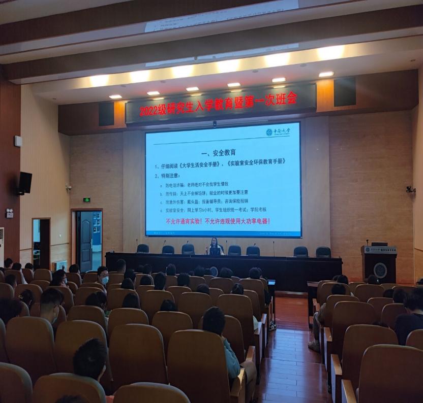 9月25日上午,中南大学物理与电子学院2022级研究生新生入学教育暨第一次年级大会在新校区物理楼116报告厅举行,学办主任、研究生辅导员胡菁菁老师和2022级全体研究生新生参加了会议。